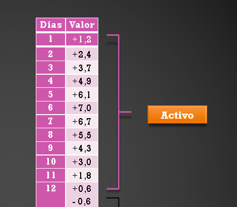 Ahora, cambiando de marcha, tenemos los siguientes 11 días y medios con valores negativos o nulos. Estos son los días de desaceleración en la influencia masculina. Aquí, las probabilidades de concebir un bebé varón disminuyen gradualmente si tienes relaciones sexuales durante los días fértiles.